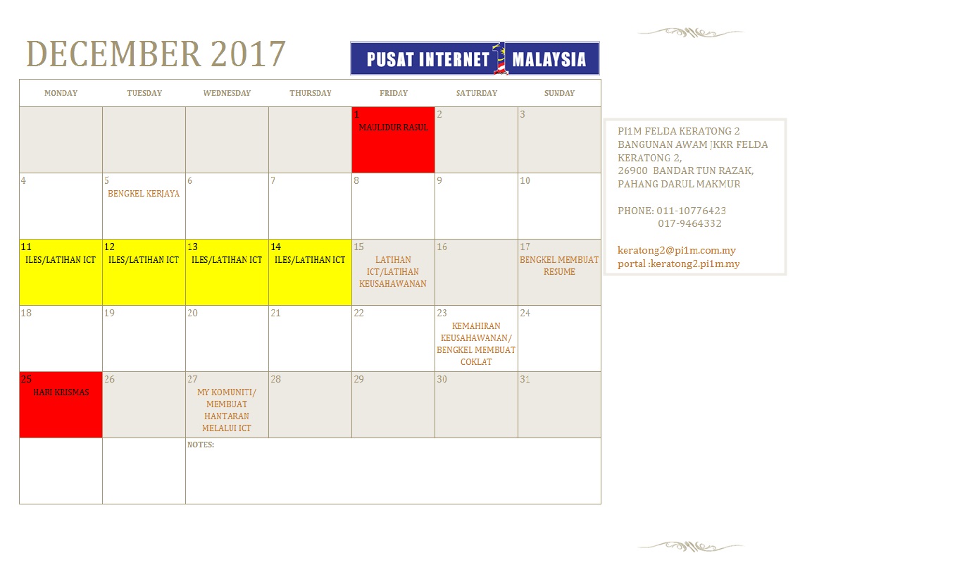 JADUAL AKTIVITI BULAN DISEMBER 2017