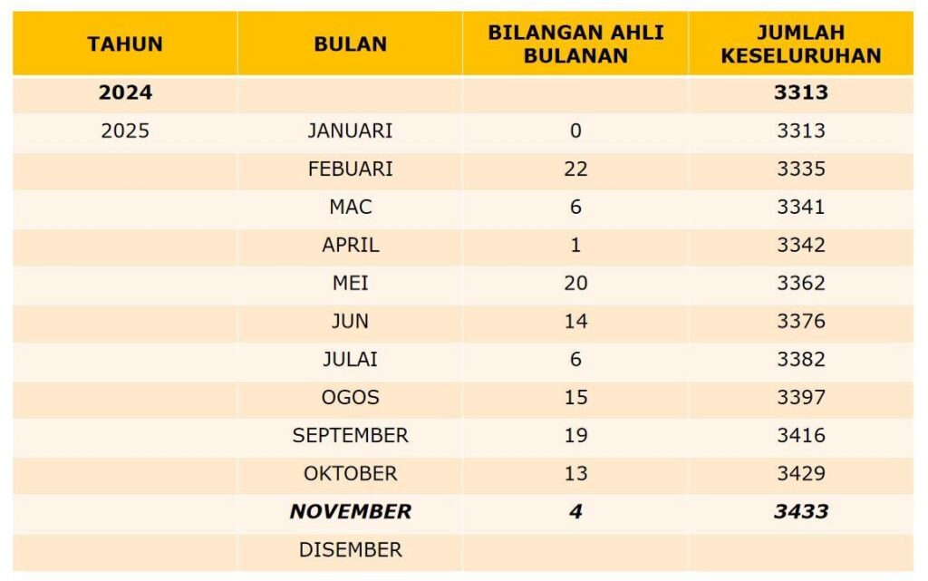 JUMLAH KEAHLIAN DARI 2009 SEHINGGA DISEMBER 2025