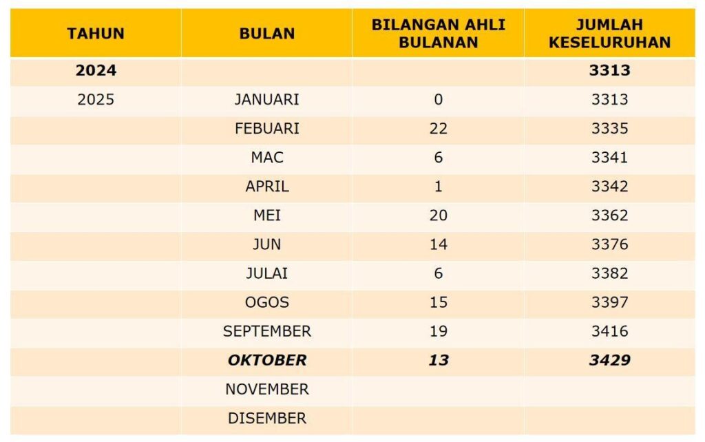 JUMLAH KEAHLIAN DARI 2009 SEHINGGA NOVEMBER 2025